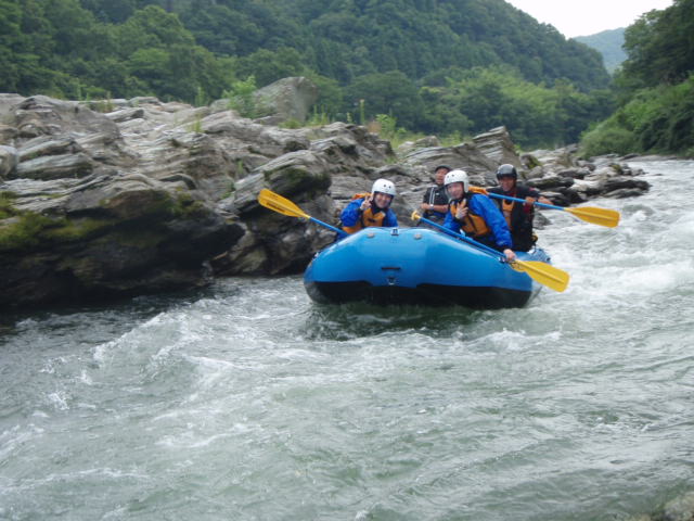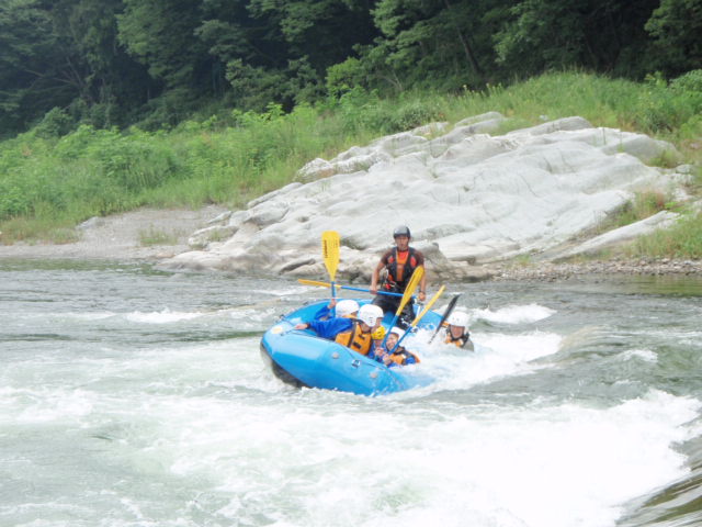今日は、午前中かなり雨が降っていたのですが、午後には雨も上がってちょうどいい天気になりました。 今回は、2人の貸し切りまったりツアーでした。 スタッフ紹介を見て決めてくれたということでしたが、目にとまったスタッフには会えましたか? それより、ツアーは楽しんでいただけてるといいのですが…。 スタート前は、少し緊張気味でしたが進んでいくにつれて テンションも上がってましたね(^_^) まーくんへの突っ込み具合で、分かりました。 そして・・・・・ サーフィンでは、最高の盛り上がりでしたね!! 後半は、少し疲れが出てきてましたが・・・(^^ゞ 明日は、筋肉痛と闘ってください(^^)v という事で、今日も私的にはすごく楽しいツアーでした。 本当に、ありがとうございましたm(_ _)m 明日からは、8月です!!夏本番☆ 皆さんとラフティングができるのを、楽しみにしてます♪♪♪ 長瀞で、お会いしましょう。 By Boss |